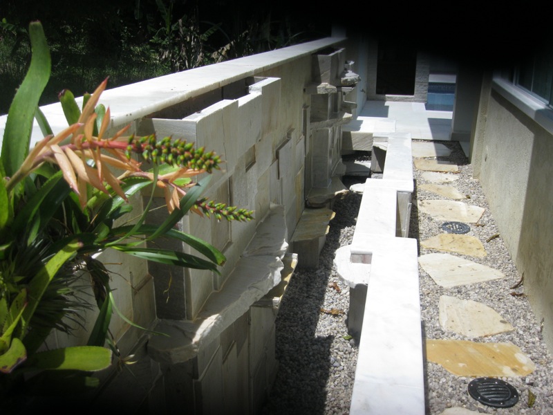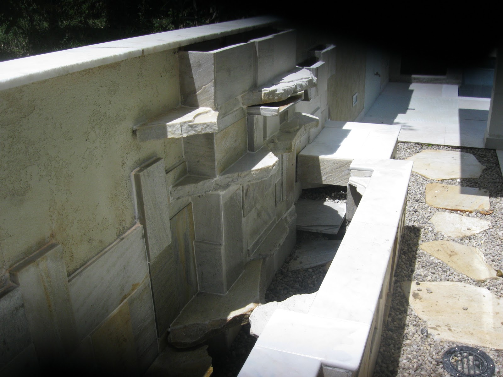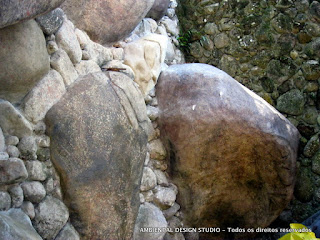No detalhe ao lado estamos incorporando novas rochas ao muro de pedras já existentes .