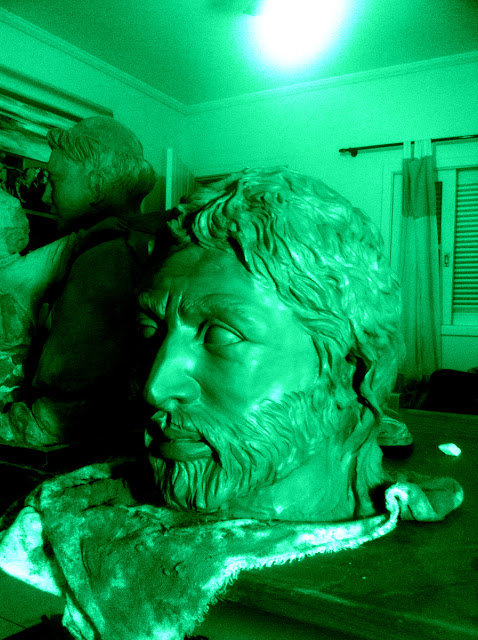 This is my first study for the sculpture of John the Baptist baptizing Jesus. The head is molded in clay. The next phase shoulders and arms, the hands are being sketches. The work will be performed in natural size.