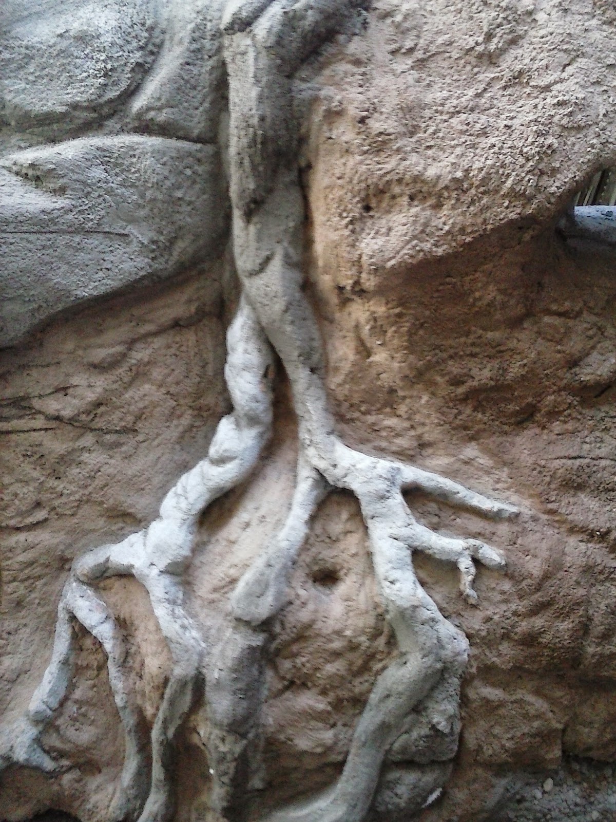A colocação de árvores troncos e cipós artificiais junto com vegetação tropical natural completa o cenário.